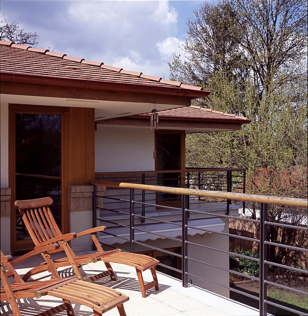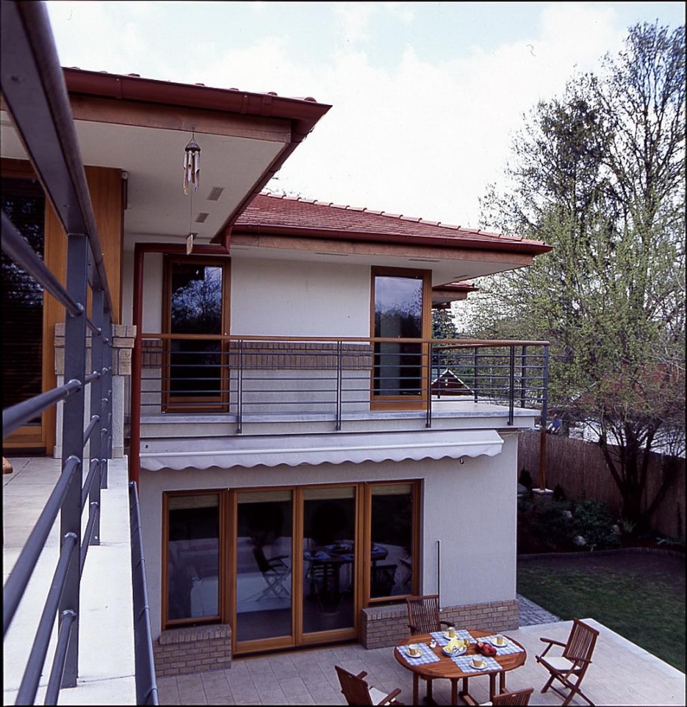 A meglévő épület adottságaihoz Wright korai épületeinek eszköztárát választotta a tervező, utalva a Préri-házak dinamizmusára is. A tető részletmegoldása újszerű: a párkány alsó síkja vízszintesen, kiváltó nélkül lebeg az ablaksáv felett ? ezt a párkány feletti tetőszerkezetbe rejtett kiváltók tették lehetővé. A masszív, de könnyed tetőn belül hatékony átszellőzés és a kinyúló párkányok révén a ház nyáron hűtés nélkül is jó klímát biztosít.
