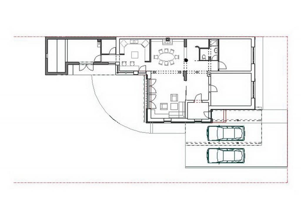 Az épület egy meglévő, jellegtelen, sátortetős ikerház átépítése.