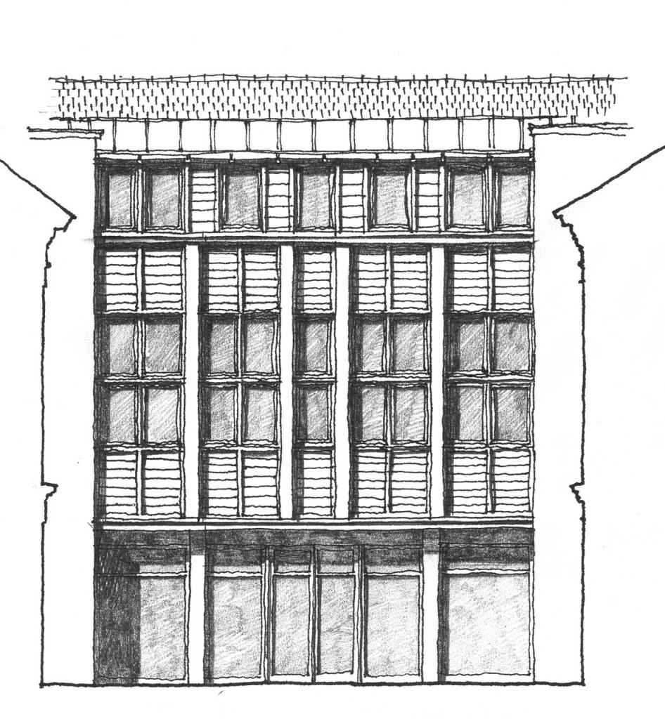 Így lett belőle irodaház, kívül-belül felújított homlokzattal, belső tereit, helyiségszerkezetét megőrizve. Nyitott kettős udvarát egy új épületszárnnyal zártuk be, így alakult ki egy nyitott és egy zárt belső udvara. Az új épületrész -bővítés- kerülni próbálja az ilyenkor alkalmazni elvárt üveges függönyfalas sémát, inkább visszaidézne a régiből, felvállalva ?újszülöttségét? is.
